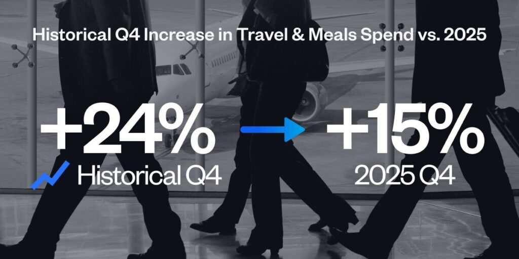 Discretionary spend will remain tight in 2026. The muted Q4 we saw in 2025, with travel and meals up just 15% versus a historical 24%, that isn’t a blip. Conferences, retreats and big team events will remain on the back burner until confidence returns.
